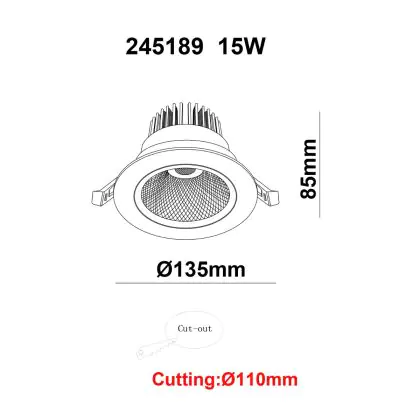 | Nome del fabbricante | White label LED Downlight Round Tiltable 15W 1200lm 60D 930 UGR19 CutoutØ110mm FrameØ135mm | |