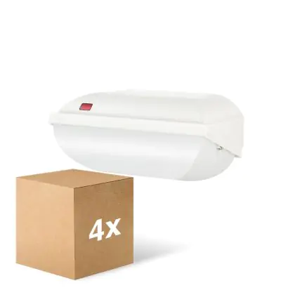 Descrizione Confezione Multipack 4x Philips LED Sicurezza Coreline BWC110 Bianca 9W 900lm - 830 Luce Calda - | 242x110mm - IP54 - Sensore Di Luce