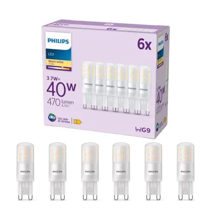 Confezione Multipack 6x Philips LED Capsule G9 Ghiaccio 3.7W 470lm - 827 Bianco Molto Caldo