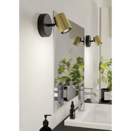 Eglo Luce Da Parete Consuma 1 Acciaio Nero Oro | IP44 - Adatto per 1x GU10