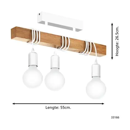 Eglo Luce da soffitto Townshend Acciaio Bianca Legna | IP20 - Adatto per 3x E27