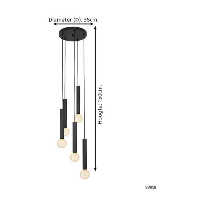 Eglo Luce Pendente Corteva Acciaio Nero | IP20 - Adatto per 5x E27