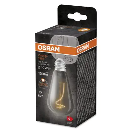 La Ledvance LED Vintage 1906 E27 Edison Filamento Smokey 3.4W 100lm - 818 Bianco Molto Caldo è la perfetta sostituzione per la tua lampada convenzionale 10W con attacco E27 grazie alla sua tecnologia LED. Passare a LED ti offrirà tanti vantaggi!