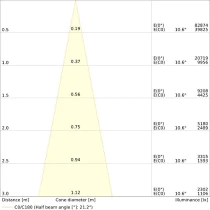 L'apertura del fascio luminoso indica l'angolo del fascio di luce proveniente da una lampada o lampadina. Si misura in gradi (D) e più piccolo è l'angolo, più piccola è l'apertura del fascio di luce.