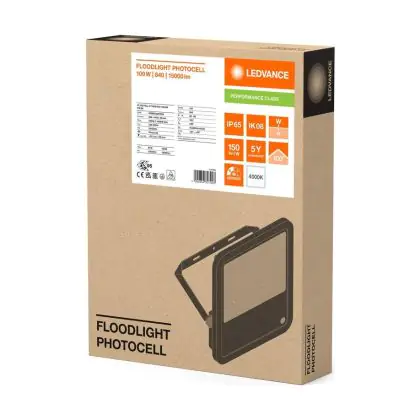 Descrizione Ledvance Proiettore LED Aluminium Nero 100W 15000lm 100D - 840 Bianco Freddo | IP66 - Sensore Di Luce - Simmetrico