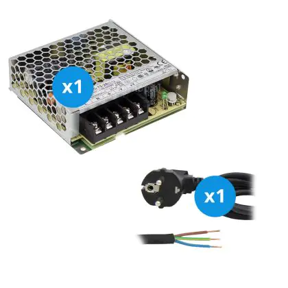 Mean Well Driver | LRS7524 | IP20 | 24V | 75W + Cavo Dell'Alimentazione 2m con Terra