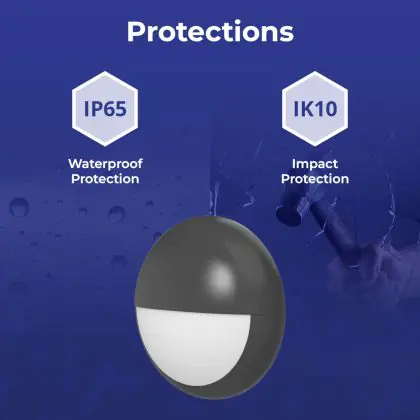 Un elemento importante delle plafoniere e delle applique LED è il loro livello di proezione IP, che indica la protezione contro l'ingresso di polvere e umidità/acqua. A partire da IP65, un apparecchio di illuminazione è a prova di polvere e acqua. Il valore IP di questa plafoniera LED è: IP65. Stai cercando una plafoniera LED per esterni? Allora presta attenzione alla protezione da urti e impatti, ovvero il valore IK, che per questa lampada è IK10 - 20 Joule.