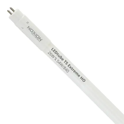 Il Noxion Tubo LED T5 Avant Extreme (Mains AC) High Output 26W 3900lm - 840 Bianco Freddo | 115cm - Sostitutiva 54W è un tubo LED perfetto per sostituire gli standard tubi fluorescenti di 54 W. Con questo tubo LED di Noxion ti assicuri una lunga durata e 5 anni di garanzia.