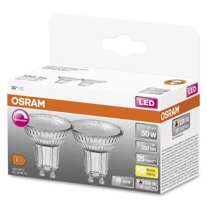 Descrizione Osram Superstar LED GU10 Spot 4.5W 350lm - 927 Bianco Molto Caldo | Dimmerabile - Miglior resa cromatica - Set of 2 - Sostitutiva 50W