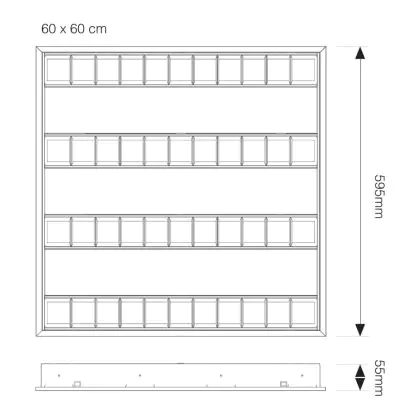 Descrizione Pannello LED Noxion Louvre Excell G2 60x60cm 4000K 34W UGR<15 Ghiaccio Riflettore | Bianco Freddo - Sostitutiva 4x14W