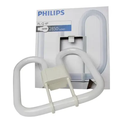 Le Philips PL-Q 4P sono lampade fluorescenti compatte di forma quadrata, a doppia D. Sono compatibili con trasformatori elettronici, e presentano una base di tipo GR10q, a 4 pin.