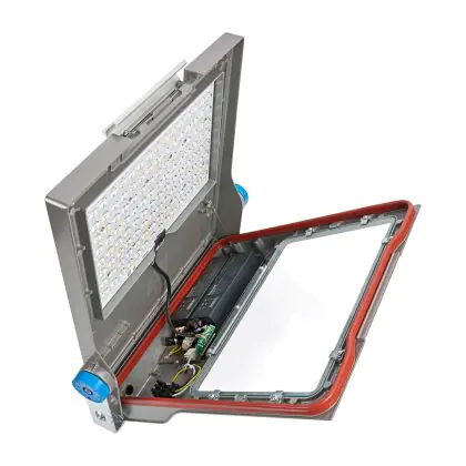 Questo apparecchio può essere usato sia in spazi interni che in spazi esterni, poiché ha indice di protezione contro l'ingresso di acqua e polvere IP66. In generale, un apparecchio con IP44 è resistente a schizzi di acqua e umidità, e può quindi essere installato in spazi esterni molto umidi o esterni riparati, come sono una tettoia. Un apparecchio che invece verrà esposto a intensi getti di acqua deve avere almeno IP54. Questa lampada ha anche un indice di resistenza a urti e impatti di IK09 - 10 Joule.